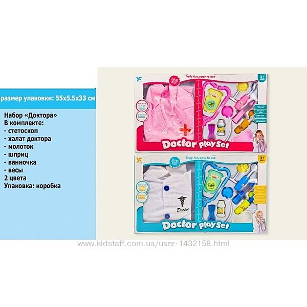 ЛІКАР НАБІР 2 ВИДИ, ХАЛАТ ЛІКАРЯ, СТЕТОСКОП, ШПРИЦ, АКСЕС, КОРОБ. - 625