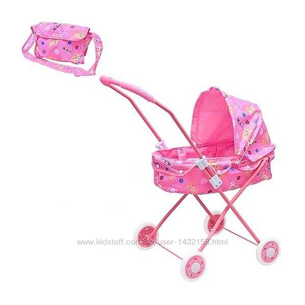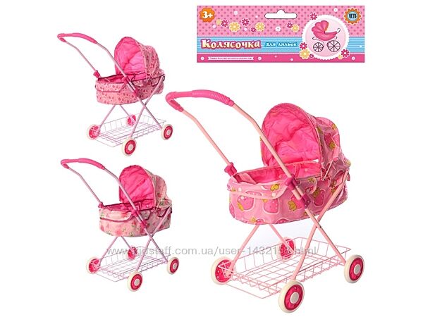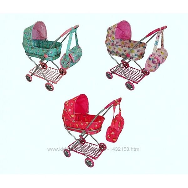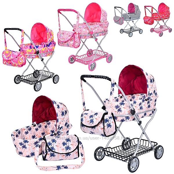 Коляска для ляльки, метал,67-63-35,кошик,сумка,вис до ручки-66см,3вида,в п/е,62-35-12см - 1145