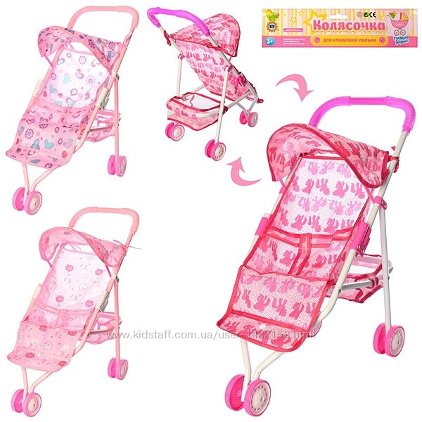 Коляска для ляльки, мет., прогулянкова, триколісний, кошик, кул., 55-26-9 см. - 525