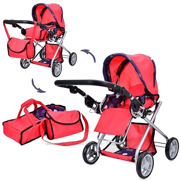 Коляска для ляльки,сумка,кошик,Люлька-переноска,регульована ручка,48-43,5-59см - 1950