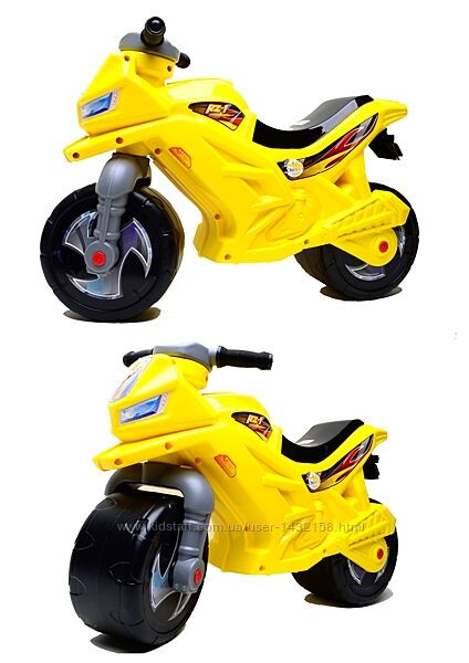 Мотоцикл-каталка Орион. Цвет лимонный. Размеры 47*68*28,5 см. Особенности:широкие колеса обеспечивают мотоциклу устойчивость, поворот переднего колеса осуществляется за счет поворота руля. Материал пластик-755