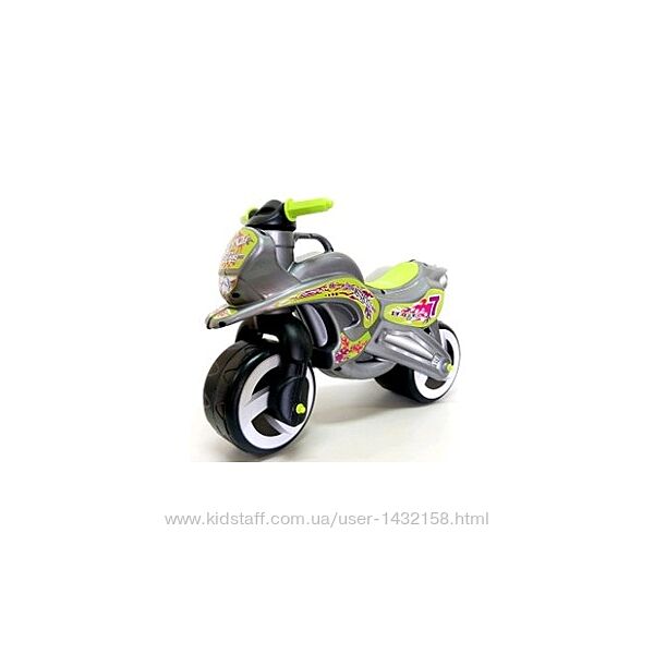 Размеры мотоцикла 71,5*51*35 см. Особенности: широкие колеса мотоцикла с вставкой, ручки на руле из мягкого и эластичного материала, ручка для удобной переноски - 860