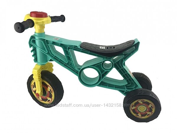 Мотоцикл Беговел-2 бирюзовый Орион. Особенности: руль с клаксоном, 4 колеса, что делает конструкцию очень устойчивой. Материал - пластик - 455