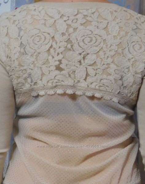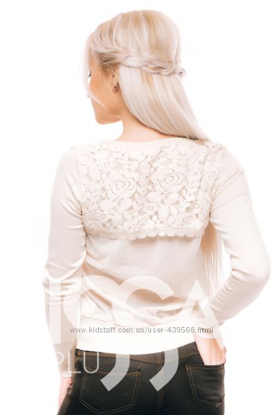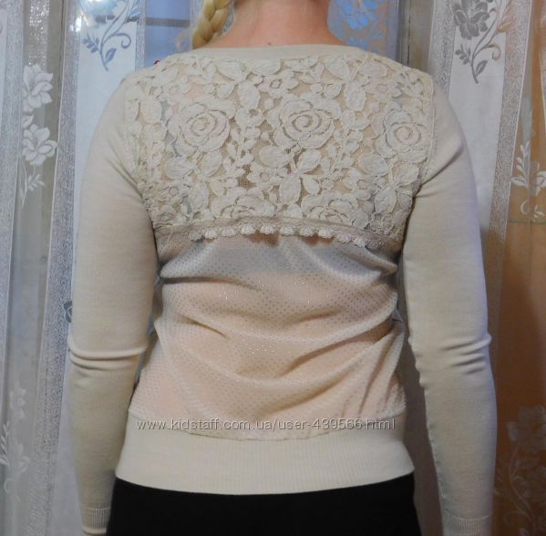 Нежная кофточка украино-турецкого производства. Состав: 50% шерсть, 30% - кашемир, 12 %- акрил, 8 % - спандекс. Размер S/M. Хорошо будет - на 42-й. (На фото - надета на 44/46). Спинка с гипюровой вставкой и полупрозрачной тканью с украшениями.Замеры: