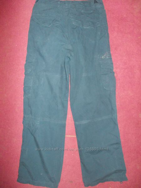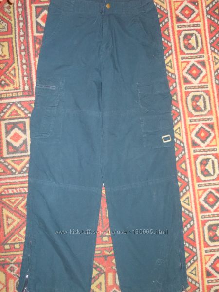 фото 1-2 - Брюки в очень хорошем состоянии, тонкая плащёвка, много кармашков, внизу штанин по бокам есть молнии, длина по боку от пояса 87 смфото 3-4 - джинсы повседневные, в целом состояние хорошее, из нюансов - на левой штанине вверху если присмотреться есть неброские пятнышки, т.е на каждый день - ролики, велосипеды и т.д. вполне сойдут, рост 146-152, длина по боку 89 см
