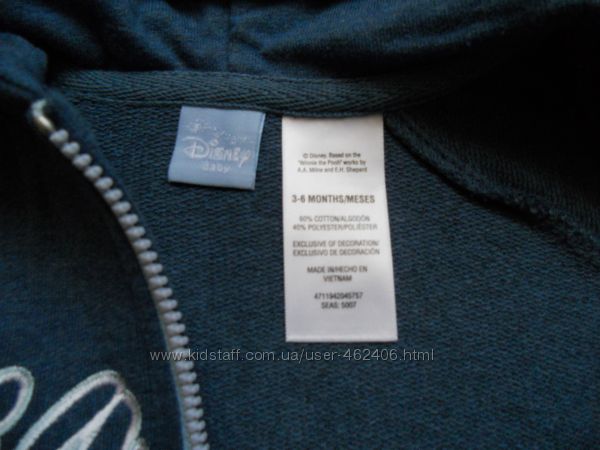 Продам спортивный костюм (тройка) фирмы Disney для мальчика на 3-6 мес. Состояние отличное, одевали один раз на фотосессию. А так по погоде не пригодился. Цвет - синий (на последнем фото - ближе всего к оригиналу). На кофте - с аппликацией - надпись и Тигра. Кофта - на молнии, брючки - на резинке.Бодик - бело-голубой с аппликацией (Тигра). Застегивается по низу (3 кнопки) и на плечике - 2 кнопки.