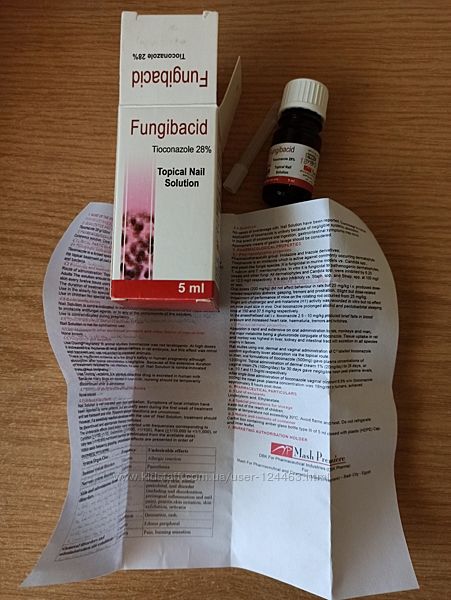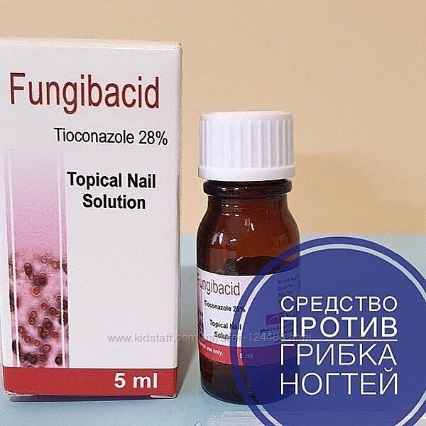 Прозрачный лак от ногтевого грибка Fungibacid 28% nail.5 ml. Египет. Моментально улучшает структуру ногтей, избавляет их от пористости, делает крепкими и плотными. Перед нанесением средства следует обработать ногти пилочкой. Полный курс лечения составляет примерно 3-5 месяцев.
