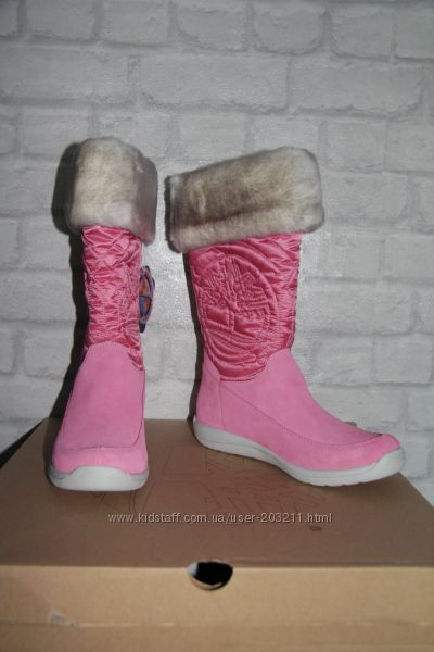 Рассчитаны на еврозиму! Верх – замша, плотный текстиль и опушка из искусственного меха. Мягкая и теплая подкладка из нейлона. Ortholite® стелька помогает ногам оставаться свежими целый день. Специальная технология Splash Blaster™ делает сапожки водонепроницаемыми и грязеотталкивающими. Очень гибкая и легкая подошва обеспечивает хорошее сцепление на разных поверхностях.