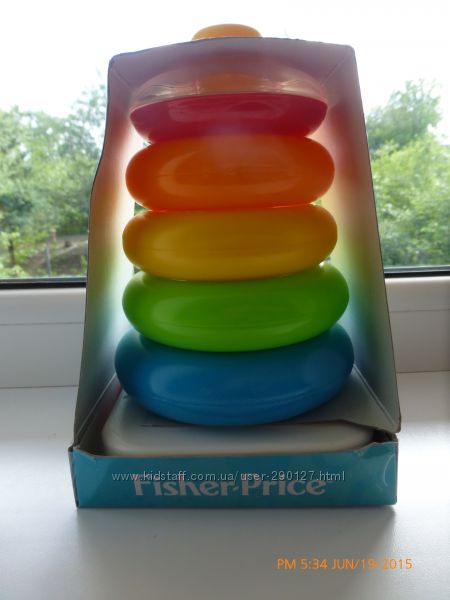 С помощью яркой пирамидки малыш тренируется брать вещи ручками. Внутри верхнего кольца находятся маленькие шарики (погремушка). Такое интересное наполнение привлекает внимание ребенка. Широкое основание для нанизывания колец делает игрушку безопасной и удобной в игре. Благодаря высокой популярности этой пирамидки, её выпуск повторяется уже много лет и она входит в бриллиантовую серию компании Fisher-price.