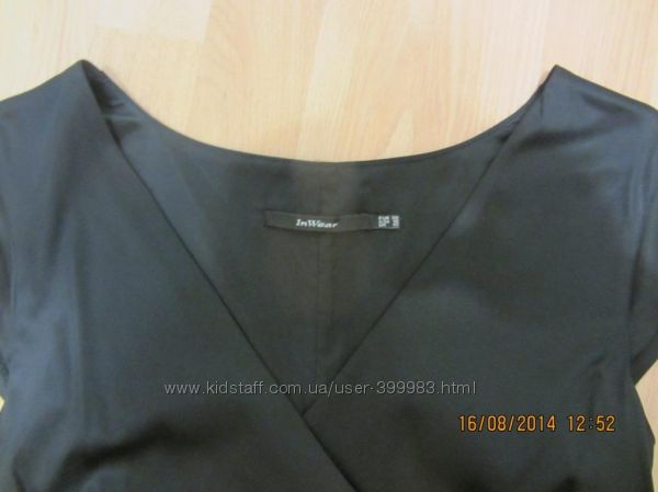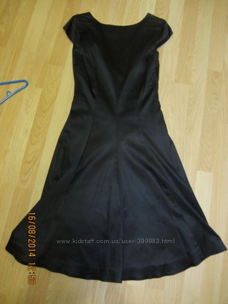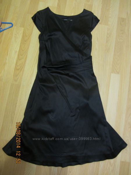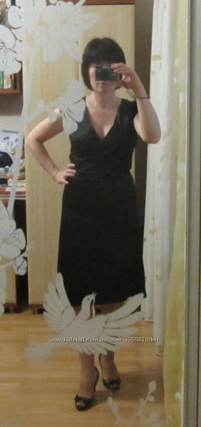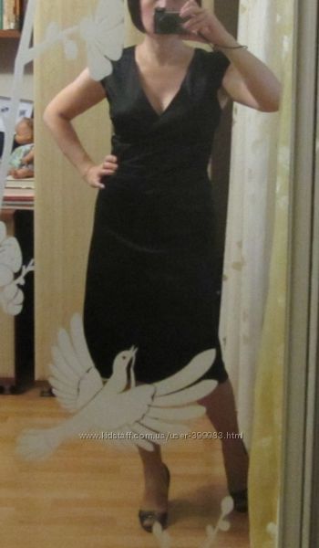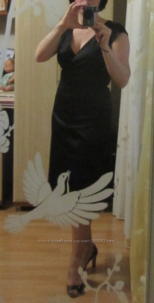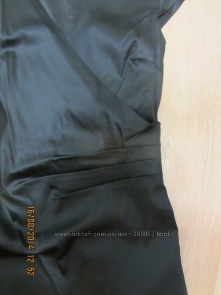 Плотный стрейчевый атлас,состав ткани: 74 % ацетат,23 % вискоза и 3 % эластан. Очень женственный силует,платье отлично садится по фигуре,сбоку по линии талии драпировка,вырез на груди оформлен как на запах,очень выигрышно подчеркивает бюст. Состояние новой вещи,одето несколько раз по особому случаю.