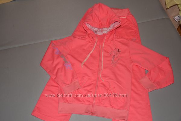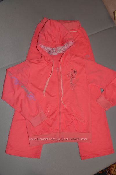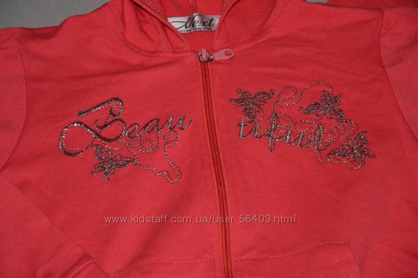 Фото 1-4 Спортивный костюм светло красного цвета, трикотаж. Украшен стразами и принтом. Состояние на 4 - есть катышки. Цена 100 грнБрюки: длина 79 см