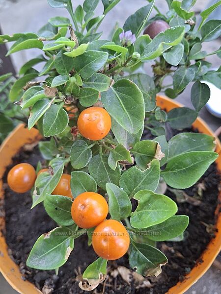 Размер растения 50 см. Стебель прямой, хорошо разветвленный. Листья темно-зеленые. Плоды маленькие , около 1,5-2 см в длину. При созревании из зеленых становятся оранжевыми.