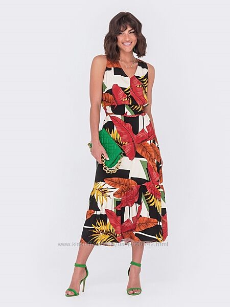 Подробное описание: Принтованное летнее платье с расклешенной юбкой