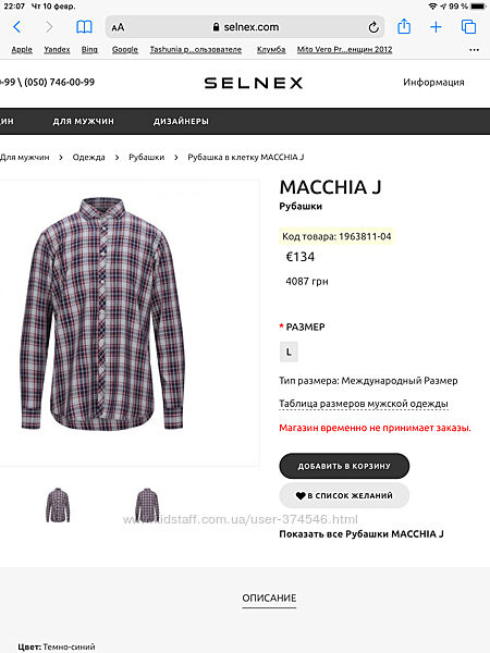 Детали: фланель, логотип, узор "в клетку", застежка спереди-пуговицы, длинные рукава, манжеты на пуговицах, made in Italy, 1850 (цены на рубашки бренда от 110 у.е.)