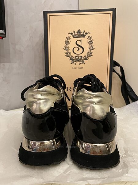 Черные кроссовки в золоте, лакированной коже с замшей, б/у, не рвались-не ремонтировались, 38 размер, маломерят, дс-24-24,5 см, натуральная кожа, лак, замша, made in italy, стоили 350у.е, с коробомДругие объявления продавца