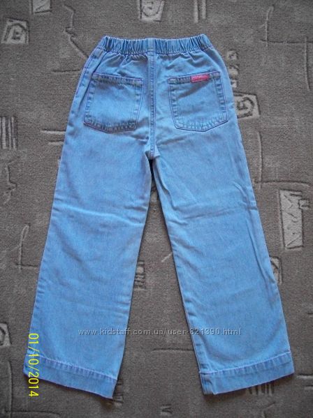 Продам Джинсы "Глория джинс" на девочку в отличном состоянии, ни зацепок, ни дырок, ни протёртостей нет. Голубого цвета, на удобной резинке, сзади карманы и на коленке левой ножки симпатичный маленький карманчик. Джинс не тоненький, плотноватый.Длина по внешнему боковому шву - 69-70 см