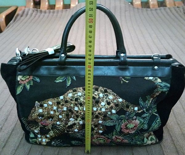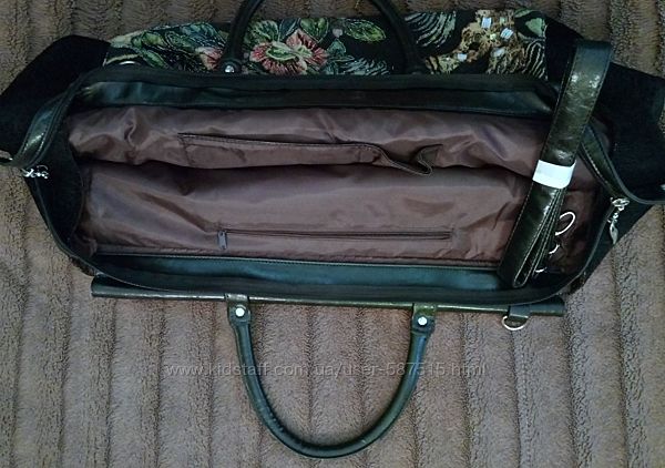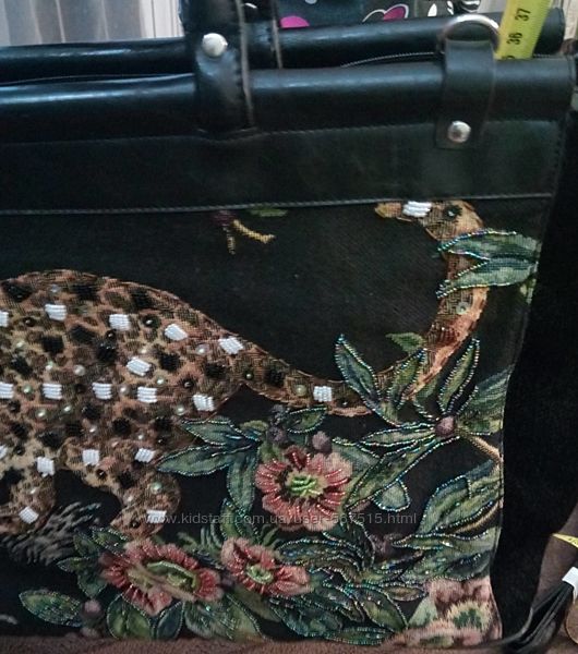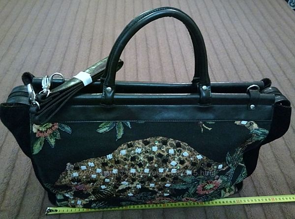 Новая красивая сумка из плотной ткани похожей на гобелен, на лицевой стороне вышивка плюс бисер плюс пайетки, ручки, а также место там, где саквояж застёгивается на змейку, вокруг внешнего кармана отделка и дно с внешней стороны - кожа. Есть возможность пристегнуть ремень, чтобы носить сумку через плечо. Внутри есть карман на змейке и отделение для телефона мелочи всякой, а также большое одно основное отделение. Этикеток нет. Саквояж никуда не ездил и ничего не перевозил, единственное его перемещение из магазина домой и на полку.Другие объявления продавца
