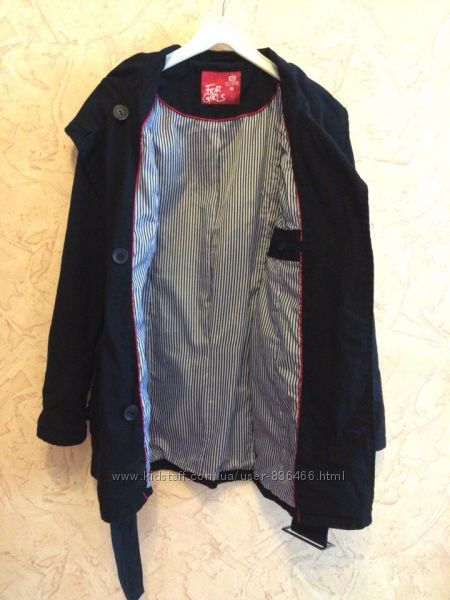 Двобортний укорочений плащ із поясом Cropp, в ідеальному стані.Розмір на етикетці вказаний М (підійде на S).