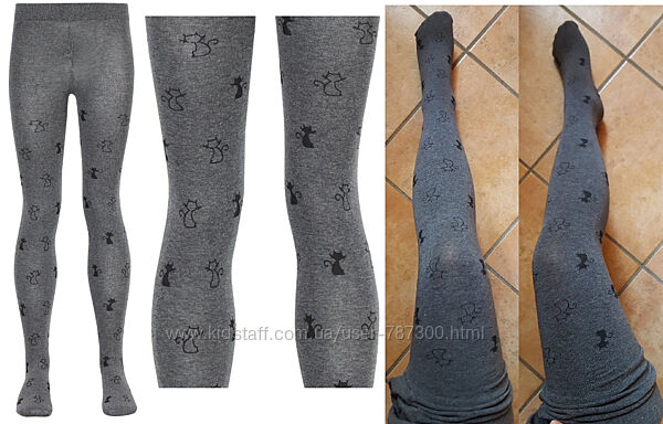 фото 3 - St.gattini grigio mel. - колготки с мягчайшим хлоком для девочек в сером меланже с узором кошечек - 85 % Cotone, 11 % Poliammidica, 4 % Elastan - 6-8(117-126) - 199грн