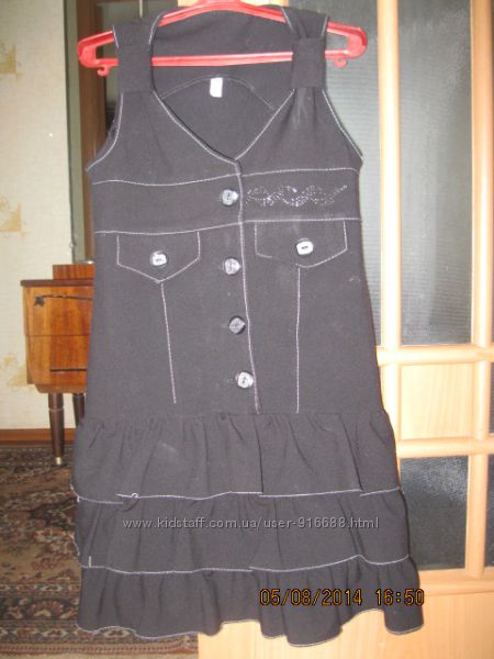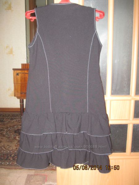 Сарафан школьный- чёрный, Размер 134, белая окантовочка, низ - в три ряда рюшиками.Товар возврату не подлежит. Пересылка за счёт покупателя.Другие объявления продавца