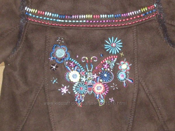 Очень красивая демисезонная дубленочка для маленькой принцессы. Размер 12-18 месяцев. Цвет коричневый. Внутри мех. Спереди и на спине яркая вышивка в виде бабочки. Cостояние отличное. Все замеры по запросу.Другие объявления продавца