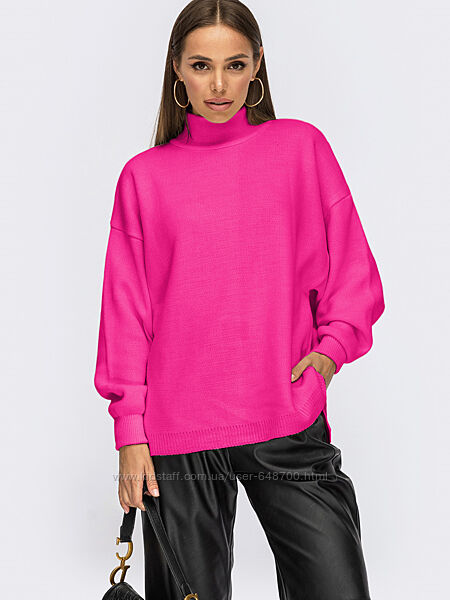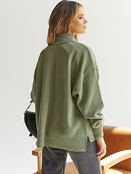 Свитер свободного кроя с удлиненной спинкой и высоким воротникомПроизводитель: Украина
