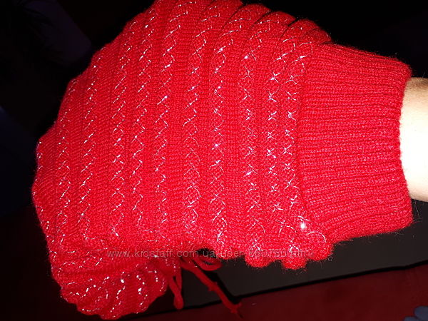 Шапка -чулок Не кашлатится красная спелая вишня цвет. с люрикс нитью, на затылке можно поразному