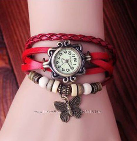 Женские наручные часы-браслет в ретро стиле.Ремешок изготовлен из натуральной кожи.