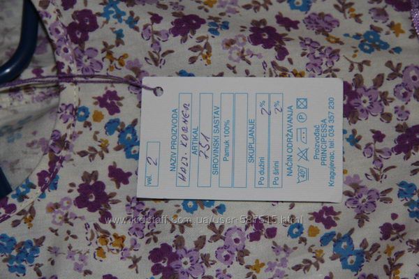 Продам новый сарафанчик для принцесы ТМ Principessa. Размер 92. Состав: 100% - Pamuk - хлопок. Производство Kragujevac (Кра́гуевац-Сербия),куплен в Хорватии за 15 Евро (не угадали с размером). Застегивается сзади на 3-х кнопочках. Замеры: длина по спинке - 43,5см, ширина от подмышки до подмышки - 30-30,5см, Можно на подарок внученьке,доченьке,крестнице, этикетка на месте. Можете быть уверенными,что в таком сарафанчике не будет с вами разгуливать еще полгорода.Другие объявления продавца