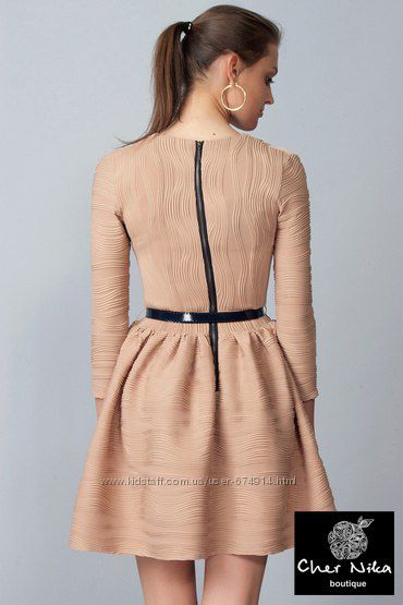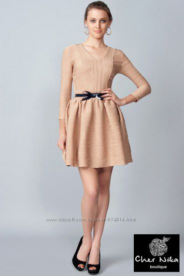 Коктейльное платье бежевое с поясомЦвет как на фото, бежевый