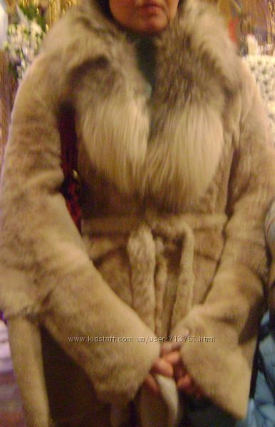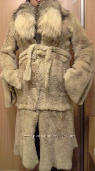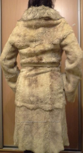 Дубленка двусторонняя женская белая мутон (одна сторона белый замш,другая -мутон)б/у,размер М,в хорошем состоянии,воротник меняется на обе стороны,нуждается в хичистке,легком ремонте.Замеры:дл= 105 см,по талии=86 см,по бадрам=100 см,плече=16 см,рукав=70 см,спина под рукавом=47 см.Другие объявления продавца