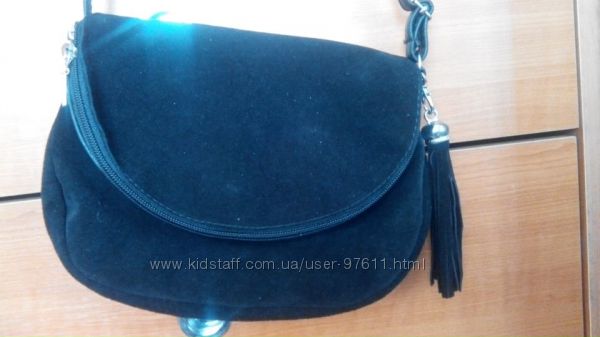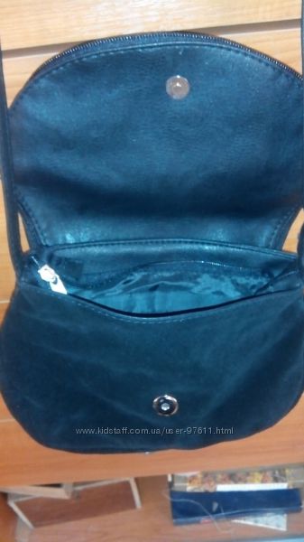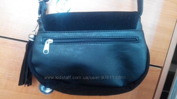 Фото 1-5. Код 461. Маленькая женская сумка черного цвета. Замш + кожзам.Перед выполнен из натуральной замши. Все остальное - качественный кожзаменитель.