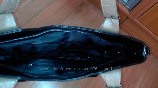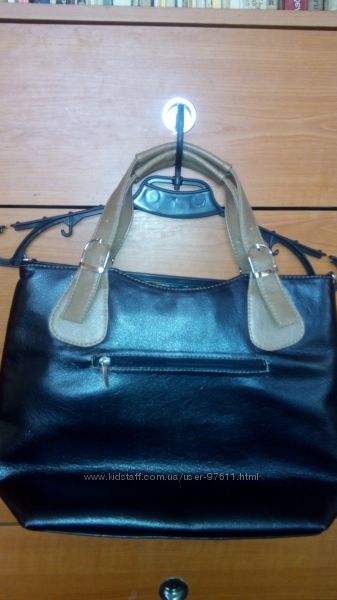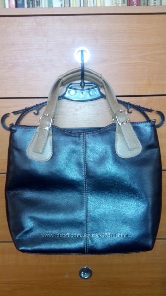 Женская сумка черного цвета с контрастными ручками цвета капучино. Качественный кожзам.