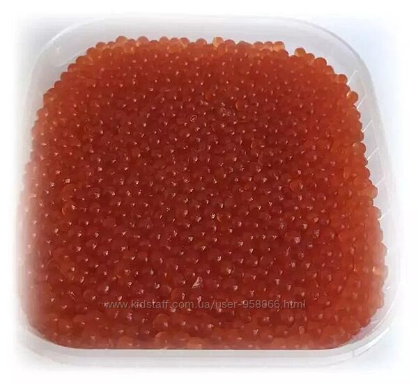 Икринки чистые, однородный насыщенный цвет икринок одинакового размера, рассыпчатые, упругие, лопаются при нажатии.