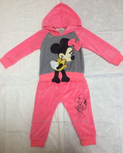 Розовый с Микки- Маусом новый детский велюровый спортивный костюм с капюшоном.