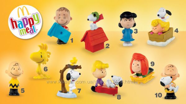 Подробное описание: Игрушки Хеппи Мил Happy meal Box, Смурфы, Снупи Peanuts, Hello Kitty и др.