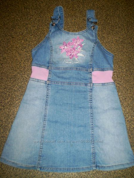 фото 5-сарафан джинсовый с вышивкой и камушками-длина-65-шлейки регулируются.размер 32 на рост-128.цена-60грн