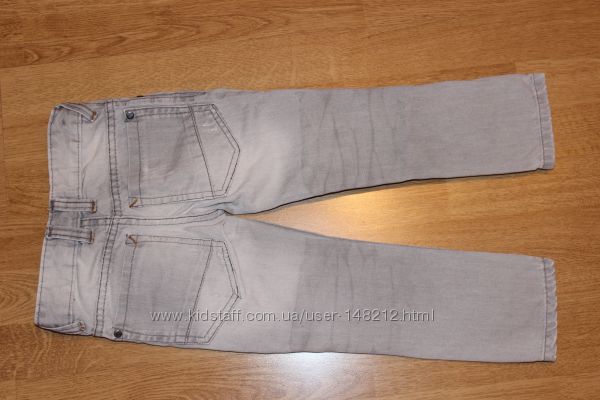 серые джинсики с потертостями НЕКСТ р.104 большемерят в отличном состоянии, но есть нюанс ф5 - на левой штанине под коленкой пару малюсеньких точечек (скорей всего от ржавчины, были изначально на новых джинсах, при покупке не заметила, да и особо не присматривалась), при носке их абсолютно не виднореальный цвет -ф1 , джинс средней плотности