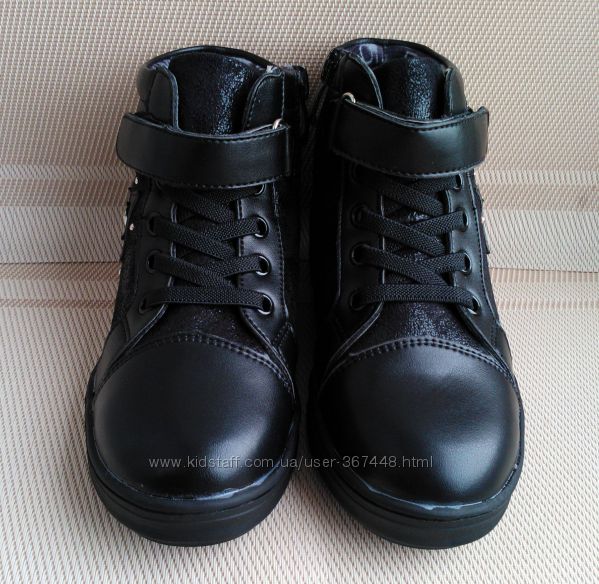 Демисезонные ботинки для девочки р.26-31. Теплые и удобные, на шнурках-резинках и липучке, сбоку - молния. Подошва гибкая, из качественной резины, внутри утеплены ворсином. Очень легкие, твердая пяточка. Мягкий кожзам.
