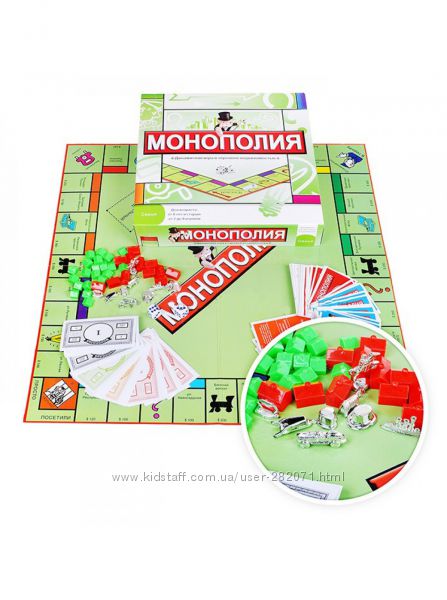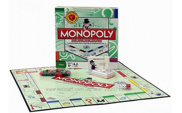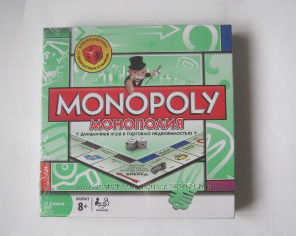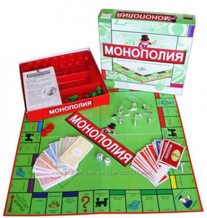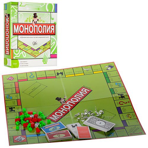 Настільна гра Монополія - динамічна гра у торгівлі нерухомістю. Прекрасна гра, яка захопить і дітей та батьків! Граючи в неї, Ви зможете поринути у світ бізнесу: великих угод, подорожей, пошуків прибуткових варіантів власності. Дуже розвиваюча гра, яка вчить дітей бути заповзятливим та активним. А завдяки швидкісному кубику грати стало швидше.