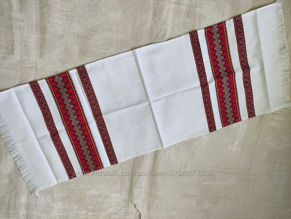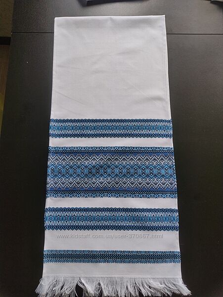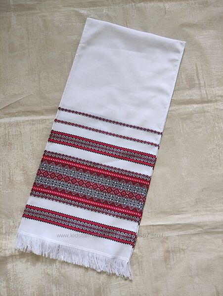 Рушник – символ української культури, духовне продовження вікових традицій, невидима нитка, що зв´язує нас і наших давніх прадідів. За багато століть існування української культури і мистецтва, рушник пройшов всю історію, і як і раніше продовжує займати ключові позиції, будучи при цьому незамінним атрибутом при проведенні численних обрядів і ритуалів. У мене ви можете придбати вже готові рушники. Ціни на рушничок варіюються в залежності від розміру. Якісна робота і презентабельний зовнішній вигляд виробу, робить рушник особливим. Такий виріб неодмінно стане неповторним атрибутом будь-якого святкування та заходи. Розміри і кольори є різні Розмір – ціна:0,70*0,34 м - 120 грн