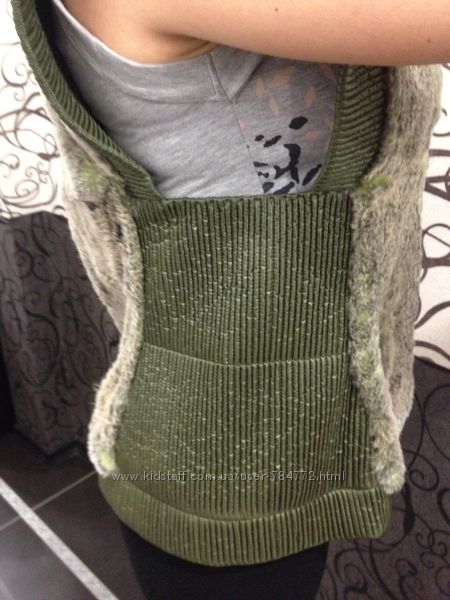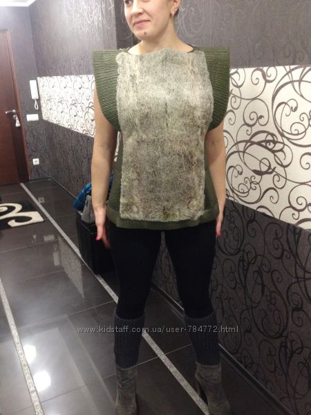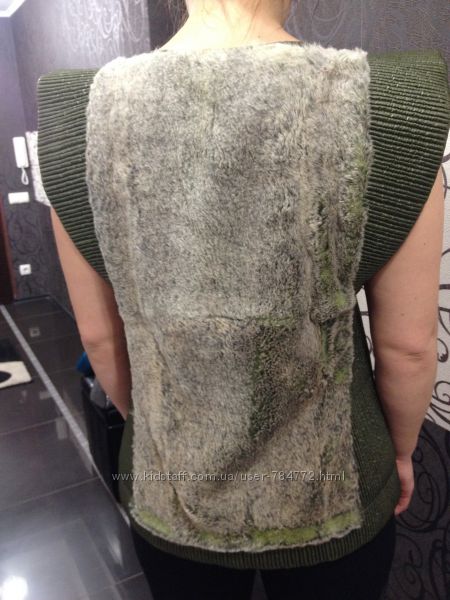 Жилетка Меховая авторская новая.Жилетка из тонированного меха кролика и объемной строченной плащёвки.