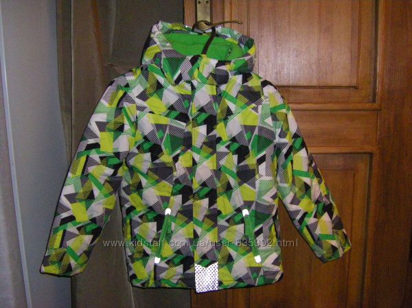 ф.10 Тополино салатовые треугольники р.98, теплая осенне-зимняя куртка - 1150 грн