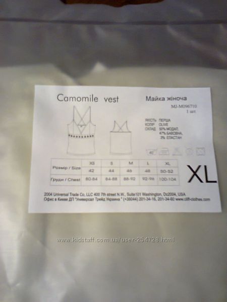Майка женская Camomile vest, новая, по старой цене. ТМ CLIFF, Украина, фабричный качественный пошив, очень интересная и удобная модель, ткань, приятная к телу. Цвет олива. Состав: 50% модал, 47% хлопок, 3% эластан. Мо́дал — это модернизированное вискозное прядильное волокно, которое вырабатывается из целлюлозы, получаемой из древесины эвкалиптового дерева. Разрывная прочность его выше, чем у вискозы, а по гигроскопичности он превосходит хлопок. Размеры: L. Замеры ( в свободном не натянутом виде): - L: ПОГ 38, длина спинки 27, длина от середины бретели 43, ширина спинки 35 ;