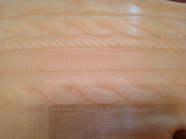 Белоснежный свитер-кардиган-жилет. Вязанный средней вязкой "косами". Размер универсальный, пойдет на любые объемы, но идеально на М-Л, 44-48 На фото одет на 44 размер, на грудь 88. Состояние нового, одевался два раза на праздники.