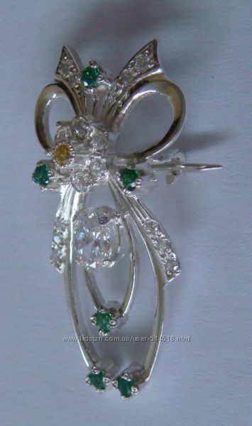 Брошь 60620ММ, серебро 925 проба, цирконы.