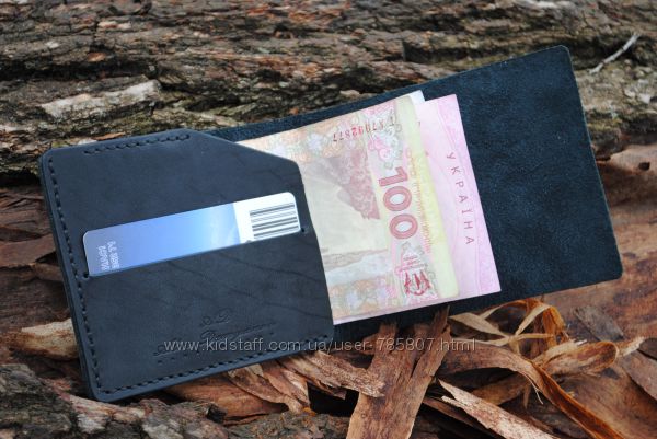 Угольно-черная кожа.Ручная надежная прошивка.Размеры 10*9*1 см.в закрытом виде.