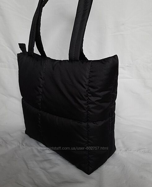 Подробное описание: Сумка дутик тканинна стьобана на синтепоні з кишенею чорна легка демісезонн