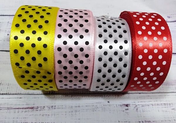 Атласная лента в горох. Ширина 6 мм, 1 см, 2,5 см