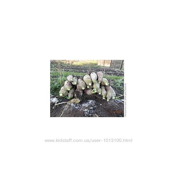 Корнеплоды куузику белые, сочные: молодняку натираю их на крупной терке, взрослым животным — нарезаю ножом. Ранней весной сохранившиеся корнеплоды высаживаю в землю и осенью получаю семена, которые могу выслать всем желающим.